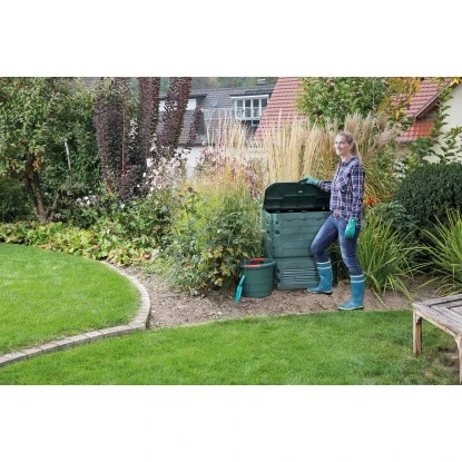 Der Thermokomposter Thermo-King 900 l von Garantia überzeugt mit einem großen Fassungsvermögen und einfacher Handhabung. Die Küchen- und Gartenabfälle werden mithilfe des Komposters in wertvollen Dünger für Ihre Pflanzen umgewandelt.