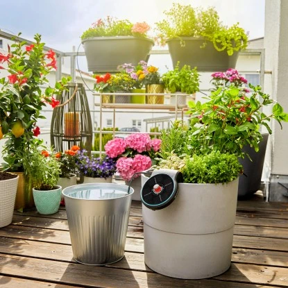 Die Solar-Bewässerung von Gardena bewässert Ihre Pflanzen auf dem Balkon oder der Terrasse von selbst. Sie funktioniert ohne Strom und Wasseranschluss und versorgt die Pflanzen in Kästen und Kübeln optimal, auch wenn Sie im Urlaub sind.