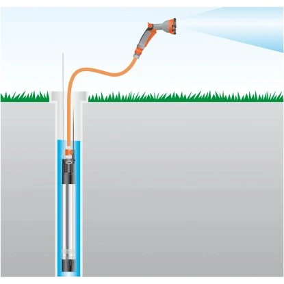 Die Gardena Tiefbrunnenpumpe sorgt für eine automatische Wasserversorgung in Haus und Garten direkt aus Brunnen oder Zisterne. Rostfreies, robustes Edelstahlgehäuse. Ideal für Bohrbrunnen ab 100 mm Ø. Stabiler Standfuß verhindert das Ansaugen von Schmutz und Sand. Elektronischer Druckschalter und Durchflusserkennungssensor schalten die Pumpe bei Wasserentnahme automatisch ein und danach wieder aus. Trockenlaufsicherung verhindert eine Beschädigung der Pumpe bei ausbleibendem Fördermedium. Bei Festinstallation empfehlen wir die Verwendung eines druckbeständigen Schlauches. Pumpe kann dauernd im Wasser verbleiben. Extrem geräuscharmer Pumpbetrieb. Lange Lebensdauer und Zuverlässigkeit durch doppelte Motorabdichtung, keramikgeschützte Antriebswelle und Verwendung hochwertiger Materialien, wie glasfaserverstärkter Kunststoff und Edelstahl. Mit mehrstufigem, leistungsstarkem Pumpenlaufwerk. Anschlussgewinde 33,3 mm (G 1), passend für GARDENA Wasserschlauch- Stecksystem. Mit Befestigungsseil zum Eintauchen der Pumpe ins Fördermedium. Fördermedien: klares Süßwasser. Nicht gefördert werden dürfen Salzwasser, aggressive und leicht brennbare Stoffe sowie Lebensmittel. Leiser, wartungsfreier Kondensatormotor mit Thermoschutzschalter.