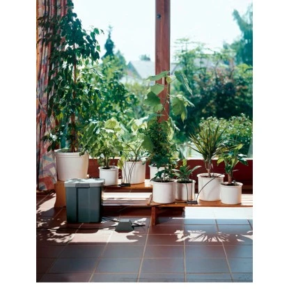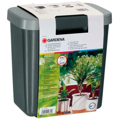 Mit dem Gardena Urlaubsbewässerungs-Set für bis zu 36 Topfpflanzen erfolgt die Pflanzenbewässerung während Ihrer Abwesenheit problemlos und automatisch. Der praktische Vorratsbehälter fasst insgesamt eine Menge von 9 l und kann flexibel platziert werden, da er keines Wasseranschlusses bedarf.