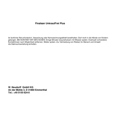 Das Neudorff Finalsan Unkraut-Frei Plus ist ein Total-Unkrautvernichter gegen eine Vielzahl von Unkräutern und Gräsern. Stark auch gegen Moose, Algen und Problemunkräuter wie Giersch und Ackerschachtelhalm. Es wirkt bis in die Wurzel und erzeugt eine schnell sichtbare Wirkung in wenigen Stunden. Kraftvoll mit 2fach-Wirksystem. Biologisch abbaubar (nach OECD 301 F) und schonend für Haustiere und Igel. Es ist außerdem in Deutschland als nicht bienengefährlich (NB 6641) eingestuft. Konzentrat für die Behandlung größerer Flächen.